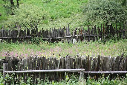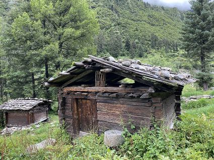 隨著海拔高度的升高與緯度的增加,一路上的植被類型也在不斷發(fā)生著變化。穿越深闊的暗針葉林,六匹馬起起落落的腳力踩出了一個(gè)馬幫的回音,所有的植物在各自的生命活動(dòng)中散發(fā)出了清新怡人的芬多精,吉美為此小聲哼唱起了愉悅的歌兒,細(xì)聽卻又像是兩只云雀在不遠(yuǎn)處鳴囀。再往上走,周遭的林木又轉(zhuǎn)換成了密致的高山杜鵑林,無數(shù)修長的木流蘇垂掛在樹枝上,像哈達(dá)。一路沉默的南杰轉(zhuǎn)頭來開始與我說話“六月間,這里的每一棵樹都開滿了粉白的花朵,一樹樹的煞是壯觀好看,我一個(gè)人經(jīng)過,總能聽到一朵、兩朵花鈍落的聲音。最初,我以為是馬雞飛落了,輕聲走入林中打探,身后又會(huì)落下一朵、兩朵花,那聲音厚重沉實(shí),林中又過于安靜,我就慌忙走出了林子......”南杰說話聲音秀氣,我聽得時(shí)斷時(shí)續(xù),過風(fēng)吹送著南杰話語中杜鵑花的香氣。前路逐漸敞亮起來的時(shí)候,路邊的杜鵑樹開始變得稀稀落落了,只見路旁堆壘著高高低低的新鮮柴垛。再往上就沒有樹木了,只有矮腳盤香和淺草,路邊的山包上緊貼著密密麻麻的貌似多肉植物的草葉,從草心抽出來一枝枝薔薇紅的花柱在風(fēng)中頻頻點(diǎn)頭。雍貝在前方的馬匹上頭低得越來越沉,以為他瞌睡,我喊了聲貝,他回頭看我,面色灰白嘴唇有些發(fā)紫。南杰回望我們后一躍下馬,從路邊的淺草中折斷幾根盤香枝別在雍貝的耳際,說是可以抵御高反。剩余的兩根遞給我,細(xì)小的枝葉上積著一層薄薄地灰色粉塵,深嗅有松脂的清香氣味,安人心神。