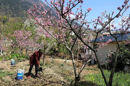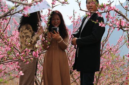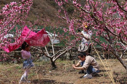 這個時(shí)節(jié),著名的賞花之地當(dāng)屬瀘定縣冷磧鎮(zhèn)杵坭的桃花谷。從瀘定縣城出發(fā),沿著大渡河右岸一路往下,行約20分鐘就能看到美麗的田野景色。只見,山頭上,田野間,或是房前屋后,統(tǒng)統(tǒng)換上了美麗誘人的春裝。放眼望去,李花、桃花、油菜花競相綻放,爭奇斗艷。這里,桃花尤其繁盛,沿著山谷錯落有致、次第盛開,讓人目不暇接,用一步一景來形容也一點(diǎn)不為過。