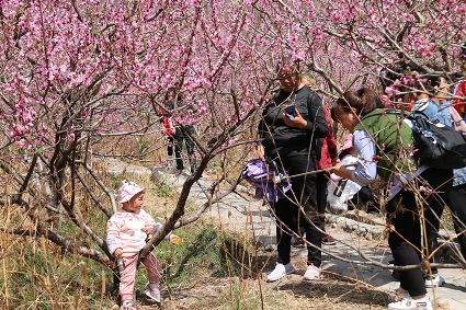 一抹抹溫暖明媚甚至跳躍著的桃紅,醉了眼簾,醉了心田。此情此景,掏出手機(jī),隨手按下快門,就是一幅絕美的春日桃花圖,想不流連忘返都難。一彎春水,一場花事,引來眾多市民、游客前來觀賞打卡,大家在桃花樹下擺著各種造型,或拍照,或拍短視頻,還有的在這醉人的花海里唱起了歌,跳起了舞,縱享春日大美時(shí)光。