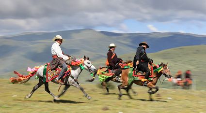賽馬是藏族人民喜愛的傳統(tǒng)體育項目之一,每到夏天,甘孜大地繁花似錦,各地都會組織耍壩子活動,賽馬便成了耍壩子活動的“主角”。近年來,在黨的民族政策光輝照耀下,甘孜大地發(fā)生了翻天覆地的變化,各族群眾的生活芝麻開花節(jié)節(jié)高。時值夏天,又到了高原一年中最美的季節(jié),當?shù)厝罕娨再愸R的方式,展示脫貧后的喜悅,展望美好的生活前景。這組照片是在康定市新都橋鎮(zhèn)捕捉到的。