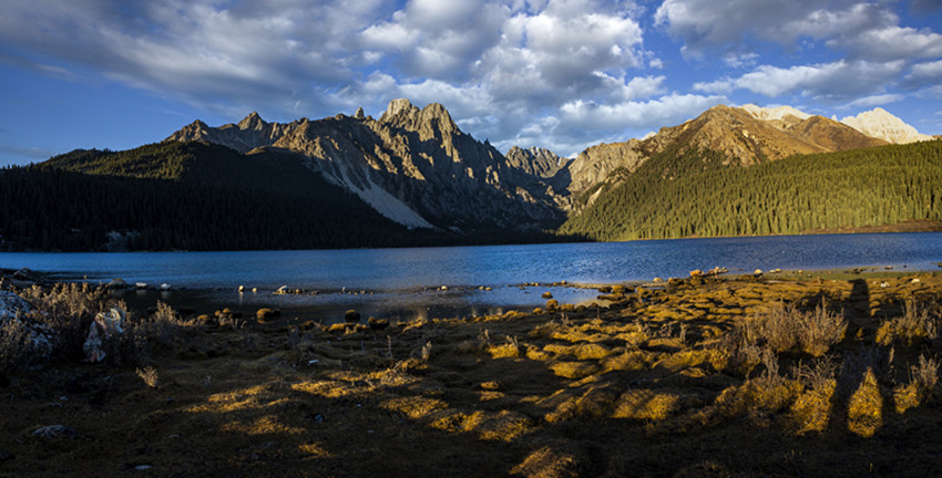 當秋風(fēng)輕輕吹過巴塘的時候,無論雪山,還是湖水,還有那藍天白云,都有了一種高遠而空曠的美。那高聳入云的雪峰,或是田間地頭的金色,總有一抹明亮的色彩,令你喜歡。我喜歡雪山的巍峨壯麗,也喜歡高山流水的潺潺,更喜歡亞莫措根的彩云。