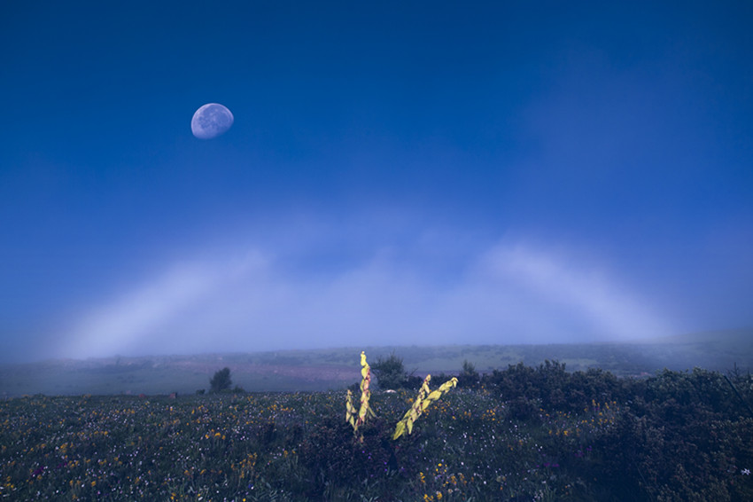月亮在夜空掛著,給雨后清爽的熱梯濕地和重疊的遠山,鍍上了一層濕潤的銀白。