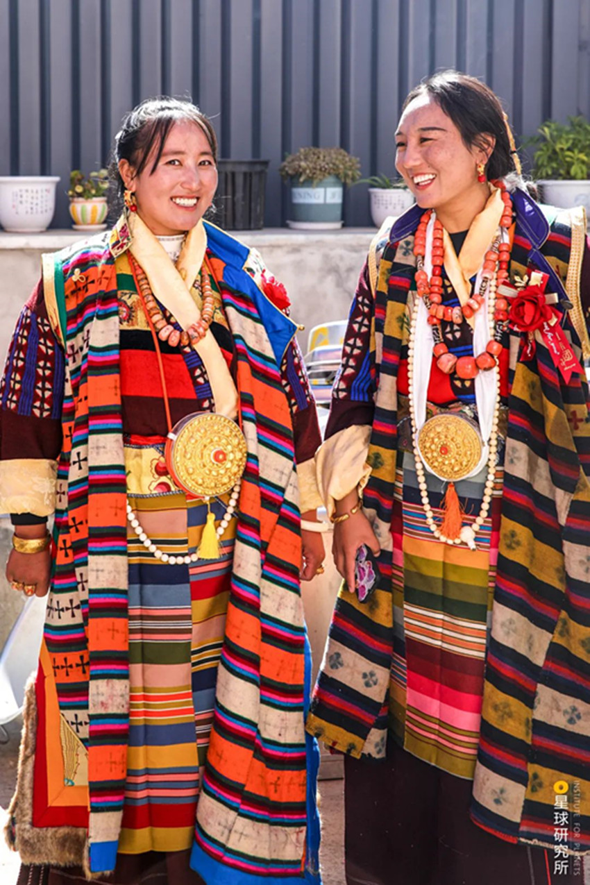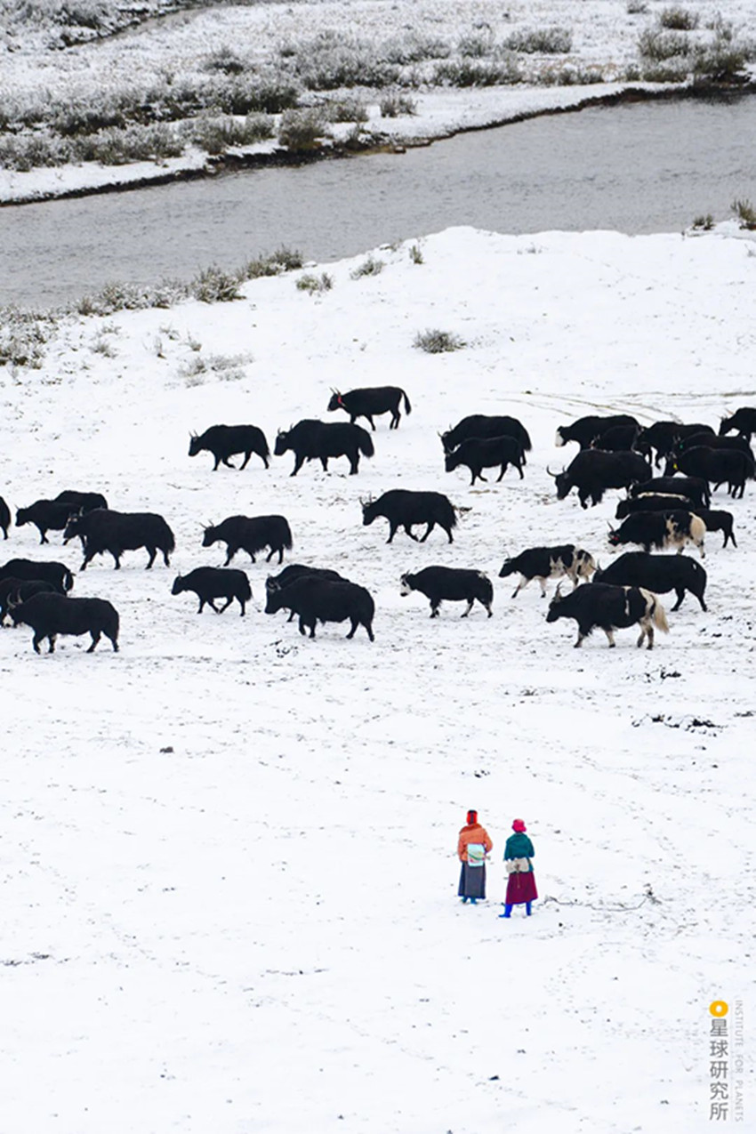 高原上定居不易而自然還有更多的考驗,高寒貧瘠的土地,山脈阻隔的交通,峽谷中蓄勢的山洪,斷裂帶上頻繁的震顫,隨時都可能給人們的生活籠罩上一層陰影。所幸從古至今,不斷地適應、不斷地創(chuàng)造,成為了這片人間的底色。為了抵御高原的寒冷,人們用山羊等動物皮毛織起布匹,縫制寬袍長袖的袍子,發(fā)展出特色鮮明的藏裝;為了對抗物產(chǎn)的貧瘠,人們飼養(yǎng)牦牛,從牦牛奶、牦牛肉中獲取營養(yǎng),用牦牛毛織成的布料做帳篷,點燃牦牛糞生火。