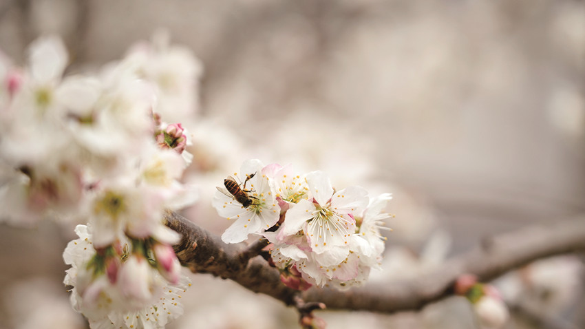 在冷磧鎮(zhèn)杵坭村,一場(chǎng)新雨過(guò)后,空氣中混雜著泥土與櫻桃花的芬芳,花朵們正迎春綻放,一簇簇、一串串,密密匝匝地綴滿枝頭,散發(fā)出沁人心脾的花香,蜜蜂飛舞在櫻桃花樹(shù)間,為一個(gè)月之后的豐收而忙碌。沿著觀光大道,綿延數(shù)公里的櫻桃花吸引了不少游客前來(lái)游玩打卡。