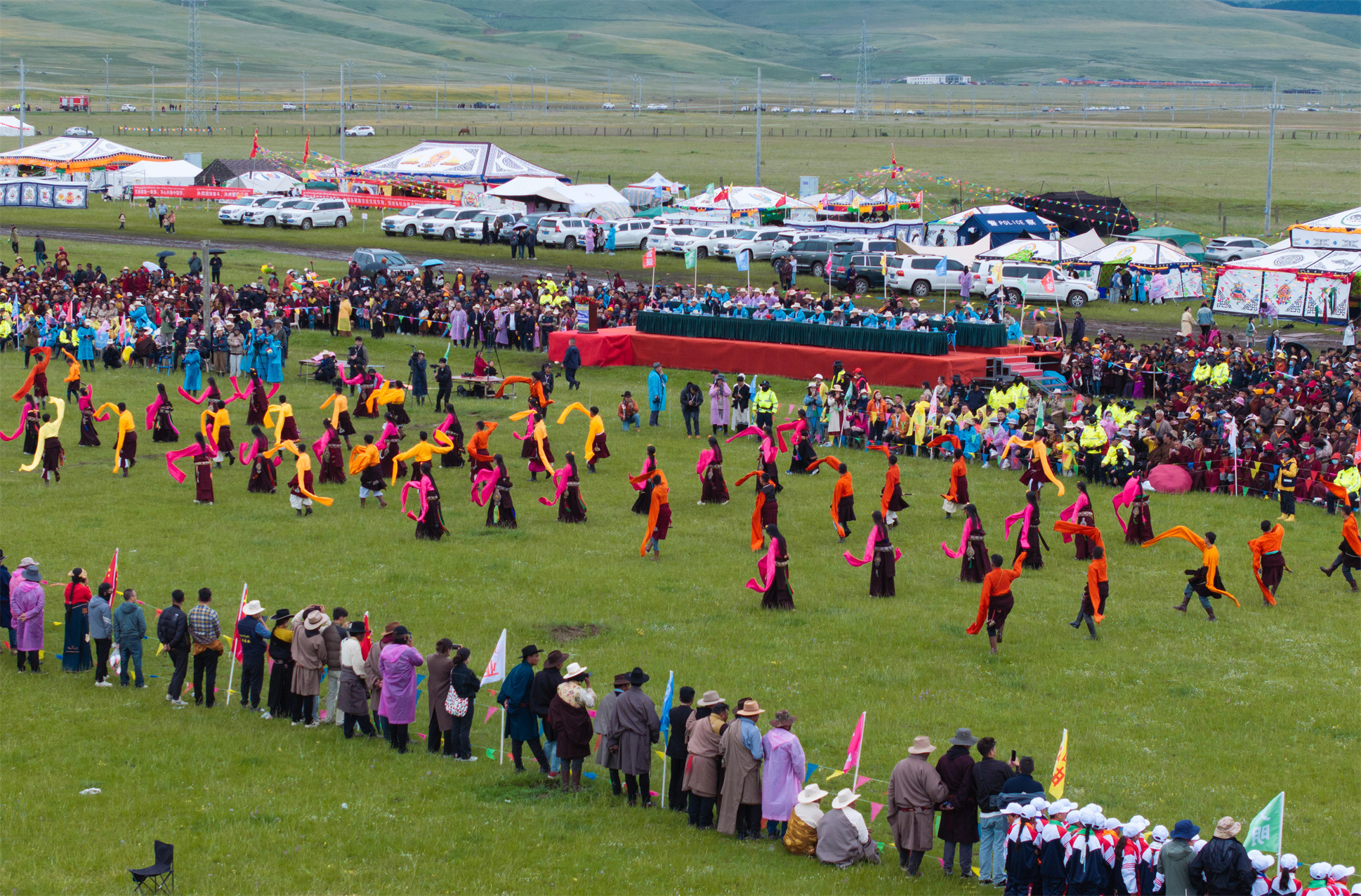 7月27日,四川省甘孜藏族自治州白玉縣第二屆“盛德白玉·草原最?!编l(xiāng)村民俗文化活動在阿察鎮(zhèn)日通草原啟幕。文藝匯演、牦牛選美、擠奶比賽、賽馬等活動在接下來兩天里將輪番上演,吸引當地牧民和眾多游客前來觀賞。