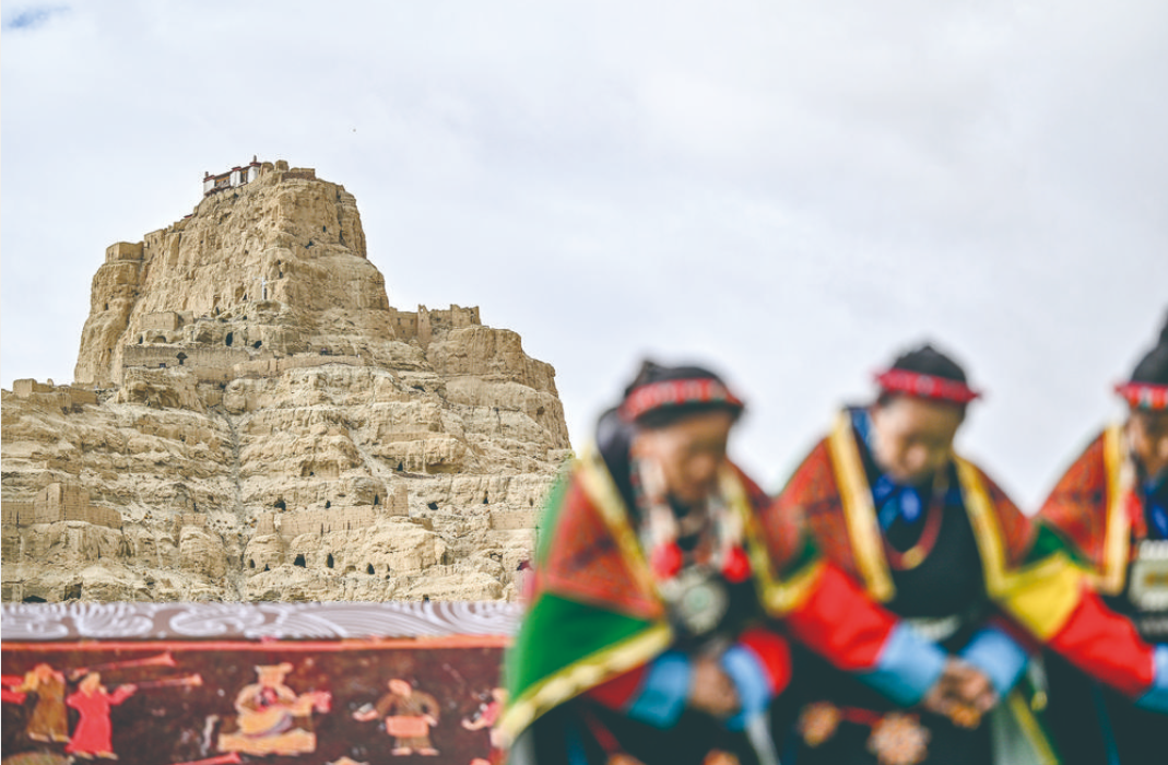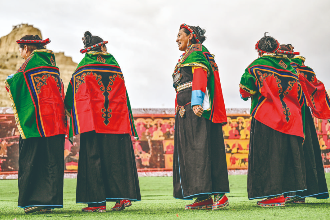 “宣舞”起源于札達(dá)縣,是西藏阿里民間傳統(tǒng)舞蹈?!靶琛比诤喜貞颉⑽璧?、說(shuō)唱等主要的藏民族民間藝術(shù),內(nèi)容涵蓋藏民族宗教、禮儀、風(fēng)俗、節(jié)慶等各方面的內(nèi)容。2008年,“宣舞”入選第二批國(guó)家級(jí)非物質(zhì)文化遺產(chǎn)名錄。