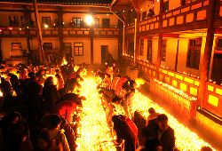 傳說藏歷十月二十五日,是藏傳佛教格魯巴(俗稱黃教)創(chuàng)始人宗喀巴大師圓寂成佛的日子。為了紀念這位杰出的宗教領袖,藏區(qū)各黃教寺廟和信徒于藏歷十月二十五日,舉行誦經、磕頭,燈供儀式等隆重的祭祀活動,祭祀宗喀巴大師在天之靈和祈愿大師賜與善良的人們以吉祥幸福。