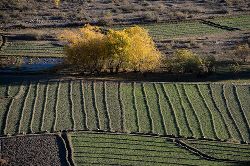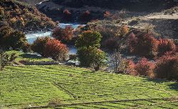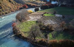 金沙江流經(jīng)四川省巴塘、得榮等縣時(shí),支流眾多,高山峽谷之間形成眾多緩坡和平地,氣候高溫、低濕,干燥晴朗。雖進(jìn)入初冬,但這里彎彎的河流長(zhǎng)流不息、樹(shù)木染色、田地漸綠,一片迷人的河谷田園風(fēng)光。