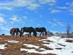 在高原,藍(lán)天、白云、白雪、冬樹(shù)、駿馬、無(wú)際曠野等都是美物,而這些,在2006年12月的某個(gè)雪后天晴的日子齊聚馬鞍山頂,讓我們飽享了一餐視覺(jué)盛宴,并印象深刻。
