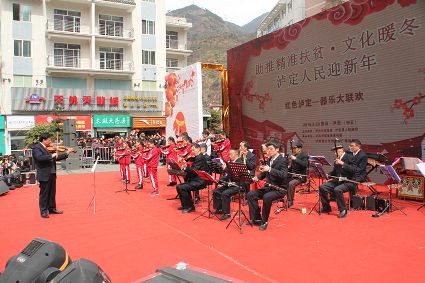 幸福瀘定——愛國(guó)守法感恩團(tuán)結(jié)文明”群眾文藝匯演在瀘定橋廣場(chǎng)火辣上演。圖為川劇變臉。何言芹攝
