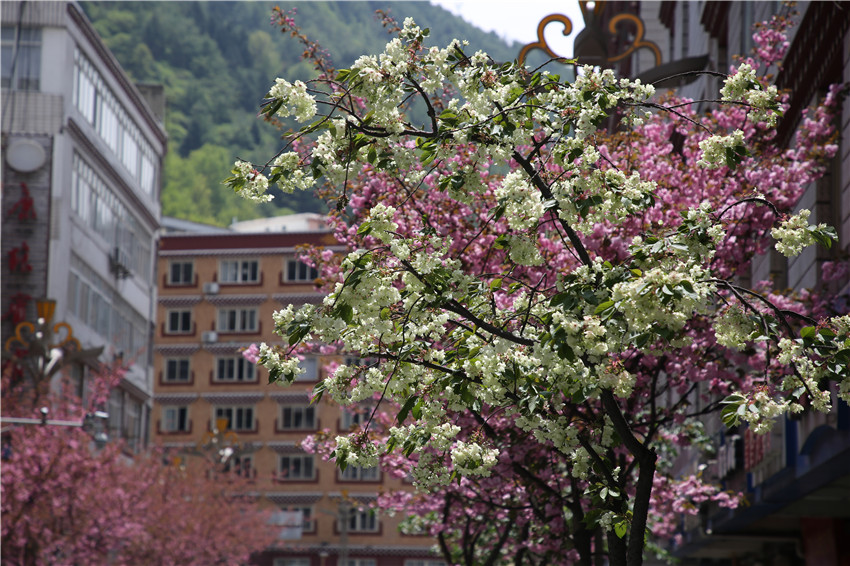 當春天遇見最美的櫻花時,驚艷了整個康定。櫻花與身邊人都將成為春日里的浪漫風景。櫻花之美,美在氣勢,櫻花紛飛,夢幻唯美。每年4月中旬,康定城北門的櫻花綻放后,人們像是約好了一樣聚集到這里,共赴這一場甜美盛宴。這一路繁花似錦,人們穿過枝椏花正盛的櫻花林,穿過粉色海洋,徑直奔向一個浪漫的童話,一路櫻花飄散,一路粉光燦爛。櫻花絢麗繽紛、陸續(xù)綻放,若恰逢一陣春風經(jīng)過,櫻花瓣隨風舞動,猶如紛落的雪花,空氣中浮動著櫻花特有的淡淡香氣,令人不禁懷疑自己置身夢境?!翱刀ǖ拇禾靵淼靡硪恍`放的櫻花,滿街的花草,折多河畔楊柳依依,康定的春天無比驚艷,醉了游人?!敝芟壬贿吪恼?,一邊感嘆,他在康定生活了40多年,20年前的康定,可以說找不到像樣的花草樹木,進入新時代,康定城市變美了,城市綠化走在了前面,城市的美譽度舒適度不斷提升??刀ㄖ海荷珴M園,姹紫嫣紅,風光旖旎。