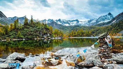 秋天是黨嶺最好的時節(jié),恍若一幅鑲嵌于橫斷山系中的絕妙油畫,雄奇壯美的雪峰、星羅棋布的高山湖泊,熱熱乎乎的露天溫泉、色彩繽紛的原始森林,緩緩流淌的清溪、厚重似毯的高山草甸,以及淳樸的嘉絨藏族風(fēng)情,所有的景色匯于一地。