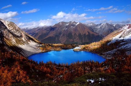 秋色與藍(lán)天相映 明珠與雪山成趣
