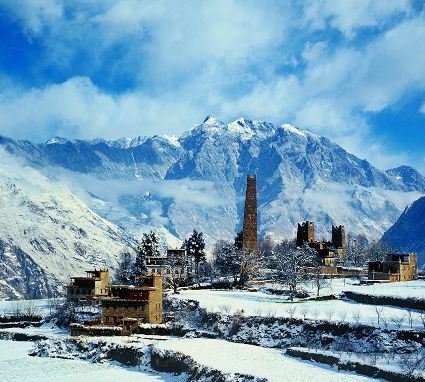 白雪皚皚,窗明幾凈,陽光從高山傾瀉而出。丹巴正沐浴著冬日的陽光,一幢幢外形美觀,風(fēng)格統(tǒng)一的寨房依著起伏的山勢迤儷而建,高高低低,錯落有致,與周圍清澈的溪流,皚皚的雪峰,構(gòu)成一幅田園牧歌式的優(yōu)美的鄉(xiāng)村畫卷。