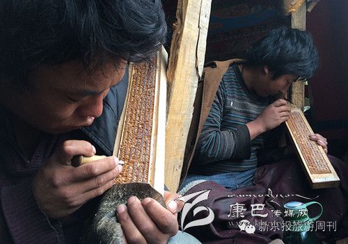白玉的刀,還有一把不能不提,那就是刻刀。在白玉寺內(nèi),有三十多年刻木版經(jīng)書的傳統(tǒng),每天都有十幾個人手拿刻刀,在窗戶下,認真地雕刻著。
