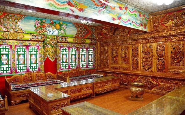 道孚民居室內(nèi)精雕細(xì)鏤,描金繪彩,每一個(gè)圖案或圖畫就是一個(gè)吉祥物或一個(gè)傳說(shuō)。民居客廳陳設(shè)豪華,富麗堂皇,極顯主人的富有;經(jīng)堂供奉佛像,酥油燈長(zhǎng)明,是家中的清靜之地;臥室多用箱式或椅式藏床,陳設(shè)溫馨而別具風(fēng)情。