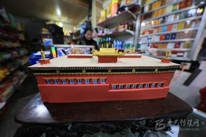 偌大的德格印經(jīng)院你能不能“請回家”?不能。那現(xiàn)在,你能把徳格印經(jīng)院“請回家”了。2016年,德格手工藝人寸潤炳按照德格印經(jīng)院原型,以1:5000的比例設(shè)計和制作完成了“德格印經(jīng)院立體擺件”《三和·吉祥巴宮》。