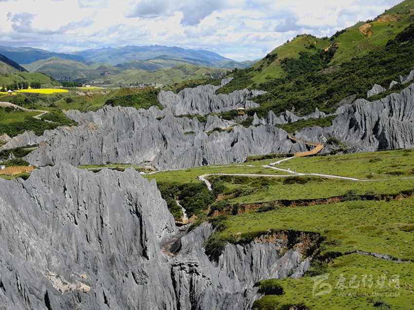 為給當(dāng)?shù)厝罕娬业揭粭l脫貧增收的致富路,2016年初,道孚縣以招商引資方式引進四川眾奧文旅投資有限公司開發(fā)打造土石林景區(qū)。同年11月,土石林景區(qū)成功創(chuàng)建為國家4A級景區(qū)。2017年7月,土石林景區(qū)更名為墨石公園并正式開門營業(yè)。與此同時,景區(qū)所在的中古村村民興建民居接待70余家,其中景區(qū)附近的民居全部租給開發(fā)公司經(jīng)營。
