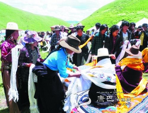 剛走進(jìn)宗塔壩子,記者便意識到一個人想象力的貧乏,現(xiàn)實(shí)中的宗塔草原以一種與眾不同的美把一個人的目光悄悄托起。四周長滿牧草的小山像溫順的花瓣,靜靜包裹著那一片平坦的壩子,如果一個人眺望的目光足夠高足夠遠(yuǎn),山和壩子的造型會讓人聯(lián)想到一朵蓮花,而壩子里小點(diǎn)般的帳篷就像一顆顆蓮子,世世代代的宗塔人便在這蓮花般盛開的天地里穿行、繁衍生息。