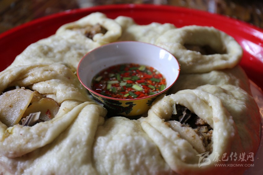 但是,家用的籠屜小,蒸出的數(shù)量有限,為了讓戰(zhàn)士們夠吃,婦女們就借來(lái)大籠屜,將包子做得更大,軍民共食蒸肉,暢敘友情。為了表達(dá)軍民魚水情,大家把蒸肉稱為“團(tuán)結(jié)包子”。從此,“團(tuán)結(jié)包子”這個(gè)涵蓋著軍民一家親意義的名字就延續(xù)下來(lái)。十八軍進(jìn)藏路過(guò)巴塘?xí)r正值端午節(jié),自此,每年端午節(jié),巴塘城區(qū)家家戶戶都要吃“團(tuán)結(jié)包子”,以此紀(jì)念十八軍進(jìn)藏,也意寓全家團(tuán)團(tuán)圓圓。