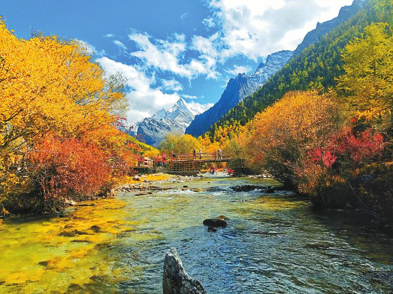 金沙江與G318線的交匯是在巴塘縣的竹巴龍,在這里一道長(zhǎng)虹般的大橋橫跨金沙江,連接川藏,G318線跨越大橋就進(jìn)入西藏。至今還清楚地記得,第一次邂逅金沙江大橋的情景。那是跟隨一位我特別敬重的老領(lǐng)導(dǎo)到巴塘縣開(kāi)展農(nóng)業(yè)工作,激越奔泄的滔滔江水,連接?xùn)|西的宏偉大橋,還有驕陽(yáng)如火的村寨和熱情淳樸的父老鄉(xiāng)親……在我心里留下了深刻的印象,這就是G318線川藏的連接點(diǎn)。
