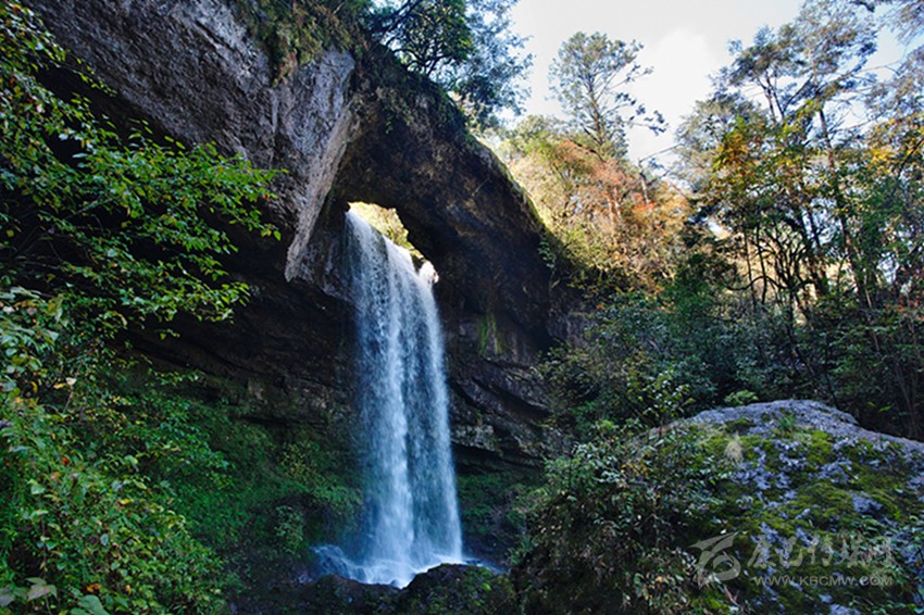 我的腳步?jīng)]有停留,再轉(zhuǎn)過一個彎道,瀑布就不見了,像我樸素的心歷經(jīng)了一場美妙的幻境一樣忽然。我聽到前方有更大的水聲跌落,仰頭就見一道更高的瀑布從高山峭壁之間,凌空垂下,水花飛濺的聲音響徹山谷。腳下的石徑像有生命似的蜿蜒穿入了瀑布之中,我登上去,站在其間看著瀑布從眼前落下,大口呼吸,心胸豁然開朗,這是瀑布給我的啟迪啊。