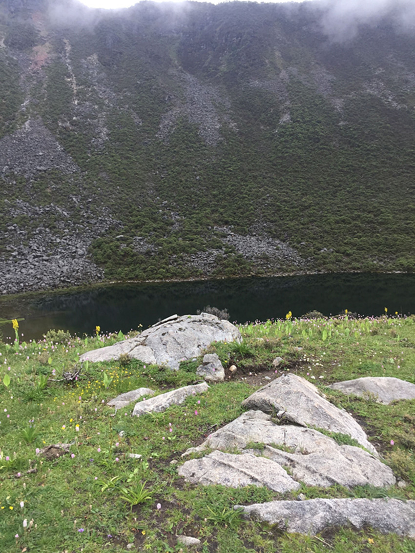 銀珠聽到南吉即興唱出的山歌那么溫婉動人,被風(fēng)吹冷的眼睛里落下了兩顆溫?zé)岬臏I水。她掩飾住自己的情緒,從粗重的呼吸里回答:“好??!”南吉聽到銀珠對唱,臉上綻放出笑容。她們的腳底不再發(fā)出響聲的時(shí)候,就是已經(jīng)走到了兩座大山之間的那片山谷。一層淺雪里露著青草、一叢叢開紫花的小杜鵑,還有密密匝匝的矮腳柳。銀珠站在一塊土包上,她打開雙臂,一臉明媚地對著南吉說:“阿姐,這片沒有積雪的山谷就是我送給你的禮物?!?/span>