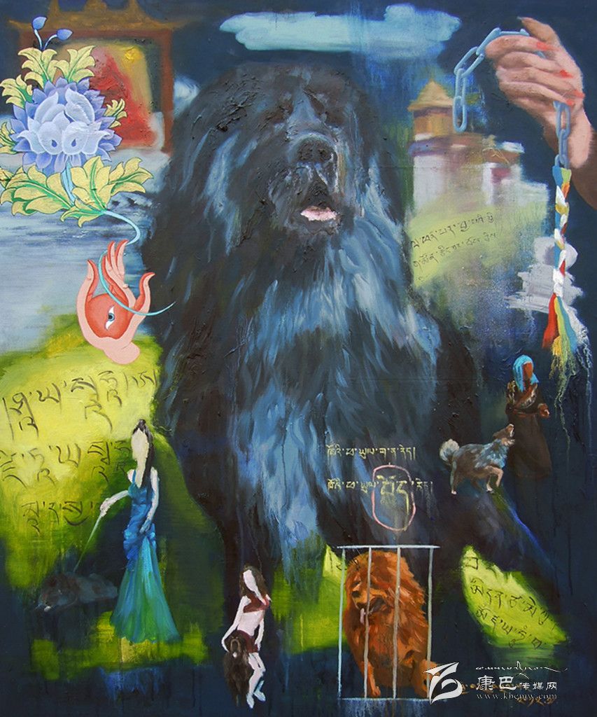 采用藏區(qū)題材做藝術的藝術家不在少數(shù),強調寫實、原汁原味是大部分藝術家的選擇,但生于康定的藝術家周韜卻有另一番更深入的認識。與美國印第安藝術家Brad kahlhamer一樣,他用更加強烈動態(tài)的視覺制造了一個魔幻世界,讓眾人熟悉的藏區(qū)元素在畫面上集中而豐富地跳躍起來,比如喇嘛、活佛、長辮子的藏族女人,甚至形狀怪異的骷髏!