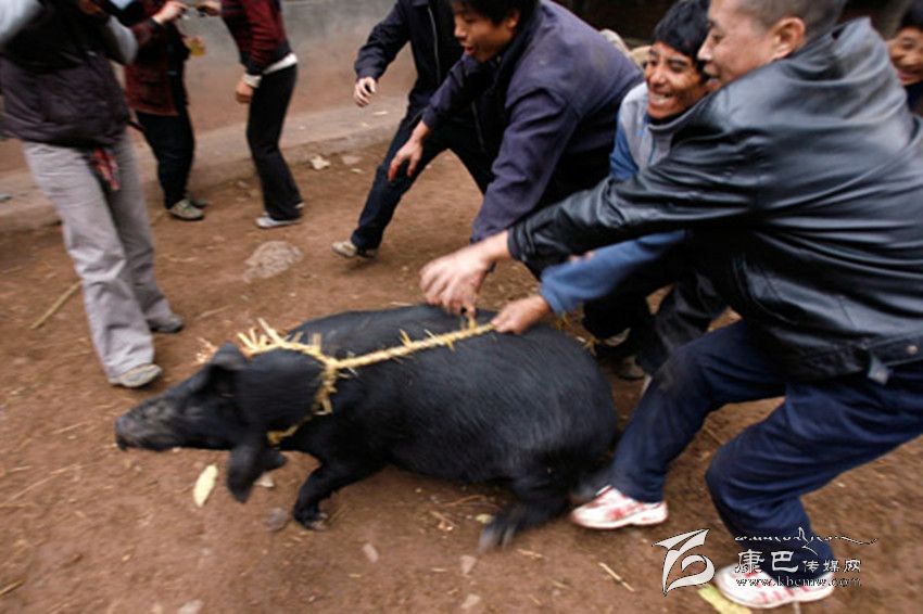 割豬蹄給娃娃們拿到山上玩。大人陪他們?nèi)计痼艋?,指揮他們將豬蹄不分你我地拋進火中燒熟后,你一塊,我一坨地掏來吃,以養(yǎng)成團結(jié)友愛的道德風(fēng)尚。