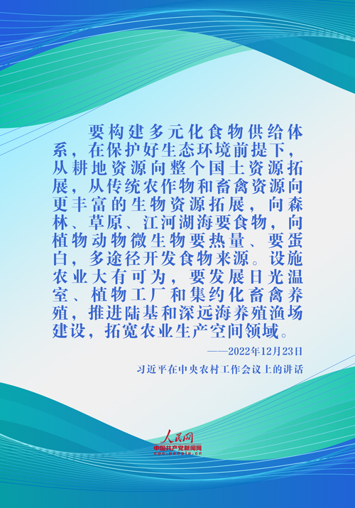 黨的十八大以來,從2015年中央農(nóng)村工作會議提出“要樹立大農(nóng)業(yè)、大食物觀念”,到黨的二十大報告提出“樹立大食物觀,發(fā)展設施農(nóng)業(yè),構建多元化食物供給體系”,再到2024年中央一號文件提出“樹立大農(nóng)業(yè)觀、大食物觀,多渠道拓展食物來源,探索構建大食物監(jiān)測統(tǒng)計體系”,以習近平同志為核心的黨中央對大食物觀的闡釋不斷豐富和發(fā)展。