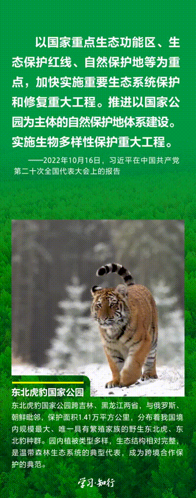“生物多樣性使地球充滿生機(jī),也是人類生存和發(fā)展的基礎(chǔ)?!蓖七M(jìn)以國家公園為主體的自然保護(hù)地體系建設(shè),是習(xí)近平總書記作出的重要部署。三江源、大熊貓、東北虎豹、海南熱帶雨林、武夷山等首批國家公園正式設(shè)立以來,生態(tài)功能持續(xù)向好,對保護(hù)生物多樣性、推進(jìn)人與自然和諧共生的現(xiàn)代化具有重要意義。