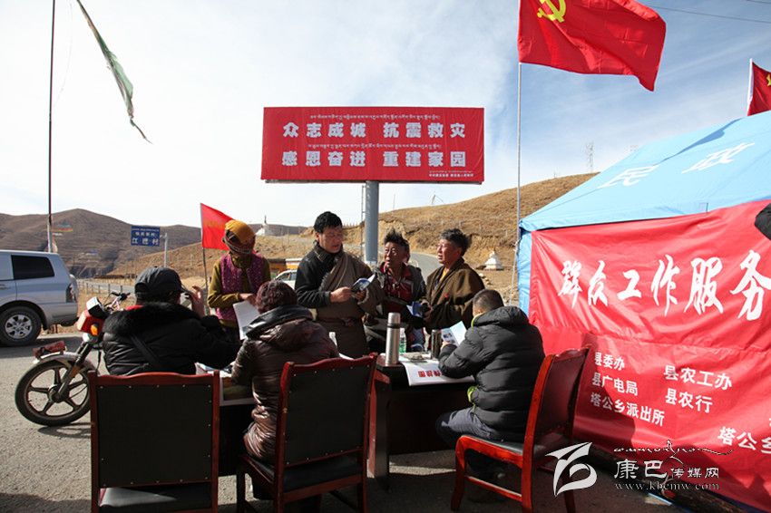 “22日晚,地震發(fā)生不久,我們便忙了起來(lái),一邊是要統(tǒng)籌抗震救災(zāi)的前期工作,一面還要和自己的結(jié)對(duì)親戚聯(lián)系,因?yàn)榇舜蔚卣鹫鹬芯臀挥谒?zhèn)。”正在江巴村為結(jié)對(duì)親戚核查災(zāi)情的康定縣委辦干部李萍介紹說(shuō),我們縣上各機(jī)關(guān)企事業(yè)單位第一時(shí)間便組建了“黨建服務(wù)隊(duì)”。平均每天有近百人深入各村各戶,全力以赴參與查災(zāi)核災(zāi)、物資發(fā)放、安置點(diǎn)設(shè)立、救災(zāi)帳篷搭建等工作。