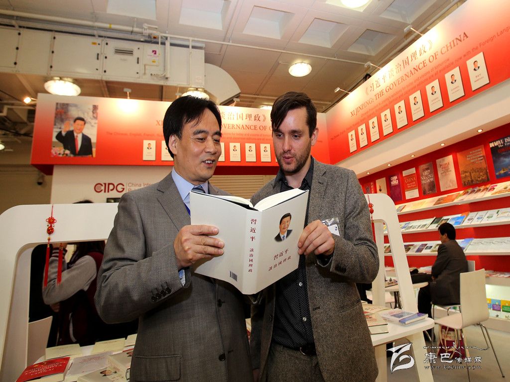 4月14日,中國國際出版集團副總裁陸彩榮(左)在倫敦書展上向一名英國讀者介紹《習(xí)近平談治國理政》(繁體中文版)一書。第44屆倫敦書展當天正式開幕。首次亮相倫敦書展的《習(xí)近平談治國理政》多文種版圖書受到各界的極大關(guān)注,成為本屆書展中國展團的一大亮點。陸彩榮在倫敦書展上宣布,《習(xí)近平談治國理政》一書全球發(fā)行量突破400萬冊,其中海外發(fā)行40萬冊,這是改革開放以來,中國國家領(lǐng)導(dǎo)人著作海外發(fā)行的最高紀錄。新華社記者 韓巖 攝