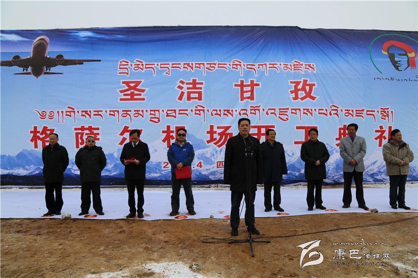 益西達(dá)瓦在致辭中指出,甘孜格薩爾機場是繼康定機場、稻城亞丁機場之后,我州建設(shè)的第三個機場,項目投資22.88億元,力爭2017年10月建成試飛。甘孜格薩爾機場的開工建設(shè),是我州實施“交通先行”戰(zhàn)略的重大舉措,對進(jìn)一步加快我州經(jīng)濟(jì)社會全面協(xié)調(diào)可持續(xù)發(fā)展具有十分重要的意義。該機場的建成,必將開啟我州“十三五”發(fā)展的新征程,必將推動我州經(jīng)濟(jì)社會實現(xiàn)新跨越,必將促進(jìn)我州旅游等產(chǎn)業(yè)實現(xiàn)新發(fā)展,必將加快我州農(nóng)牧民群眾脫貧奔康的新步伐。他說,建設(shè)甘孜格薩爾機場是全州人民特別是北路群眾多年的期盼,機場規(guī)劃在“十一五”、爭取在“十二五”、建設(shè)在“十三五”,飽含著中央領(lǐng)導(dǎo)和國家部委的厚愛,體現(xiàn)著省委、省政府的重視,凝聚著歷屆州委、州政府的心血,我們一定要倍加珍惜,一定要把甘孜格薩爾機場建設(shè)成一流的高原機場。希望甘孜、德格兩縣通力合作、協(xié)調(diào)配合,切實為機場建設(shè)營造良好的外部環(huán)境;希望州級相關(guān)部門簡化程序、搞好服務(wù),切實為該機場建設(shè)開辟“綠色”通道;希望廣大人民群眾多理解、多支持,切實擁護(hù)機場的各項建設(shè);希望各參建單位和廣大建設(shè)者發(fā)揚“亞丁機場精神”,努力把甘孜格薩爾機場建設(shè)成為一流的標(biāo)桿工程。
