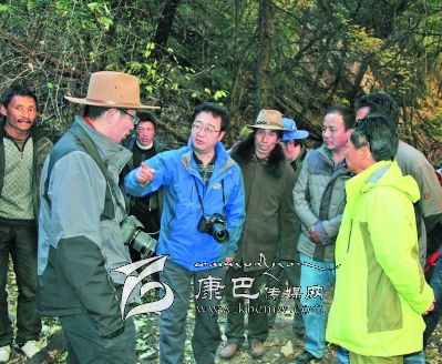10日早上8點30分,益西達(dá)瓦又率隊騎馬從卡斯村進(jìn)入卡斯谷。一進(jìn)谷口,大家就被谷口小巧別致的巖溶鈣化彩池、千年古樹沖天柏所震撼。據(jù)說谷口沿線還有古冰川的遺跡,是雪峰、冰川、海子、瀑布、溫泉的共融體,國家二類保護(hù)植物干香柏,藥用植物蟲草、貝母、黃芪、大黃等也非常豐富。面對谷內(nèi)五彩繽紛的山色、野性激蕩的溪流、挺拔粗壯的古樹、枝椏橫溢的叢林、結(jié)實樸拙的木橋、壁立千仞的懸崖,考察隊員不禁驚呼:“這不就是阿凡達(dá)的故鄉(xiāng)嗎?”益西達(dá)瓦時而騎馬,時而步行,一邊察看景致,一邊興高采烈的與同行考察隊員和縣鄉(xiāng)村干部交談。景區(qū)怎樣規(guī)劃?怎樣建設(shè)?怎樣宣傳?景區(qū)取什么名字?為景區(qū)賦予什么樣的文化靈魂?哪里修棧道?哪里架索道?哪里修觀光電梯?都一一指導(dǎo),清晰地勾畫了卡斯谷開發(fā)藍(lán)圖。