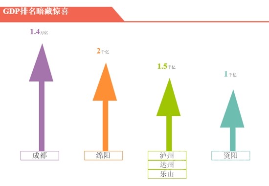 各市差距逐漸縮小,競(jìng)爭(zhēng)勢(shì)頭只增不減。值得注意的是,雅安和巴中競(jìng)爭(zhēng)最為激烈,二者GDP差距僅為1.4億元。1.4億元是個(gè)什么概念呢?已總投資246億元的成宜高速為例,該高速每公里投資約1.56億,也就意味著二者差距還不夠投資1公里高速公路。