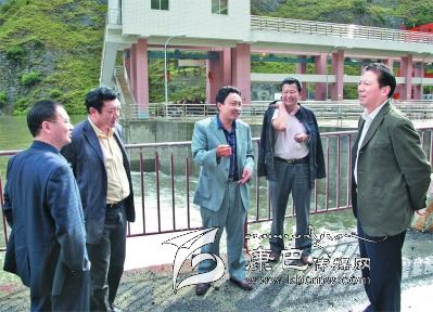 畢世祥同志(右一)生前到水庫檢查安全工作。
