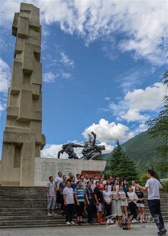 7月26日,市民在紅軍飛奪瀘定橋紀念碑下練習(xí)合唱。新華社發(fā)(唐文豪 攝)