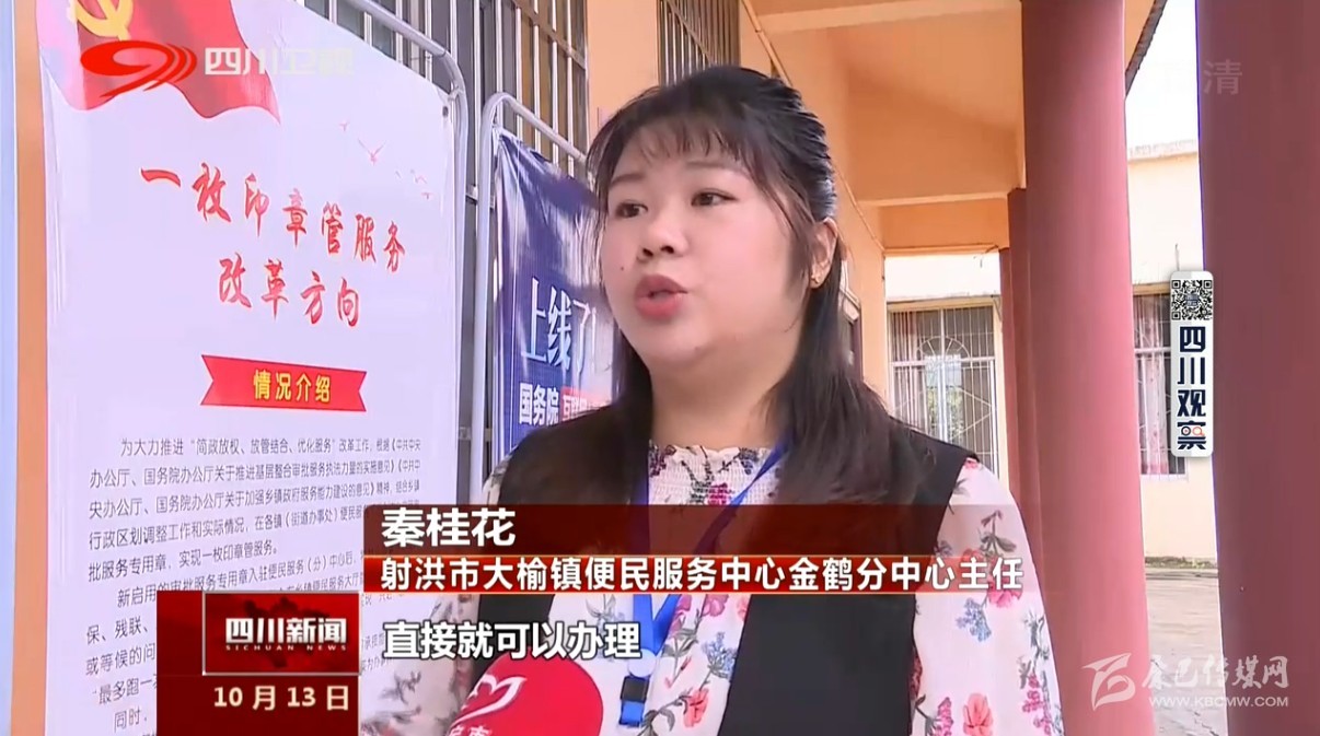 射洪市大榆鎮(zhèn)便民服務中心金鶴分中心主任秦桂花說:“現(xiàn)在這個一枚印章整合之后 這邊分中心直接就可以辦理 非常的便民。”