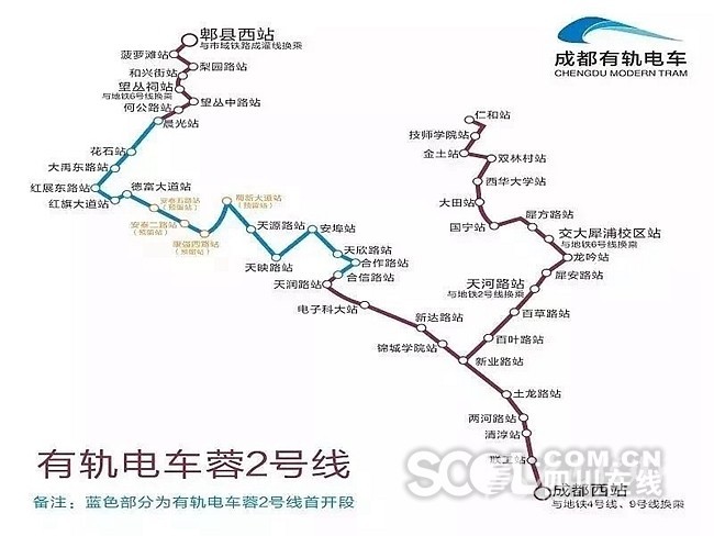 呈Y形布局,非首開段起于成都西站沿線經(jīng)過望叢祠、石牛公園等景點及西南交通大學、西華大學等多所高校,抵達仁和站和郫縣西站。