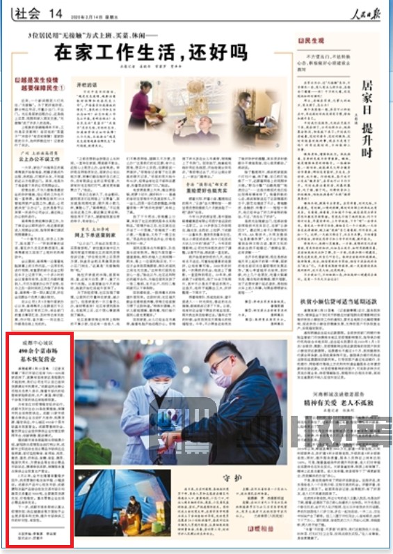 2月14日出版的《 人民日報 》報道了成都市為有效應對疫情穩(wěn)定經濟運行,出臺20條政策措施,保障市民生活物資供應的舉措。目前,成都市市場供應充足。