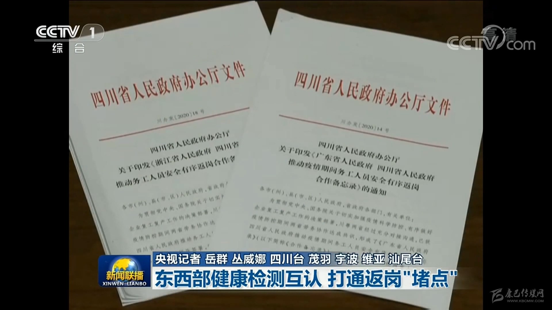 為了讓外出務(wù)工人員順利走出家門返崗,四川務(wù)實推出“健康碼”,又主動和7省市簽署《合作備忘錄》,成為第一個和其他省建立起健康檢測互認(rèn)工作機(jī)制的省份。今天的《新聞聯(lián)播》單條關(guān)注了這一全國創(chuàng)新之舉,央視聯(lián)手四川廣播電視臺探尋機(jī)制背后的邏輯。來看川臺記者的一線調(diào)研采訪。