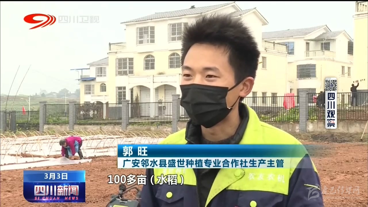 廣安市鄰水縣盛世種植專業(yè)合作社生產(chǎn)主管 郭旺: 我們今年預(yù)計(jì)(播種)100多畝水稻,現(xiàn)在已完成30%左右,剩余的估計(jì)在3月10號(hào)左右完成。