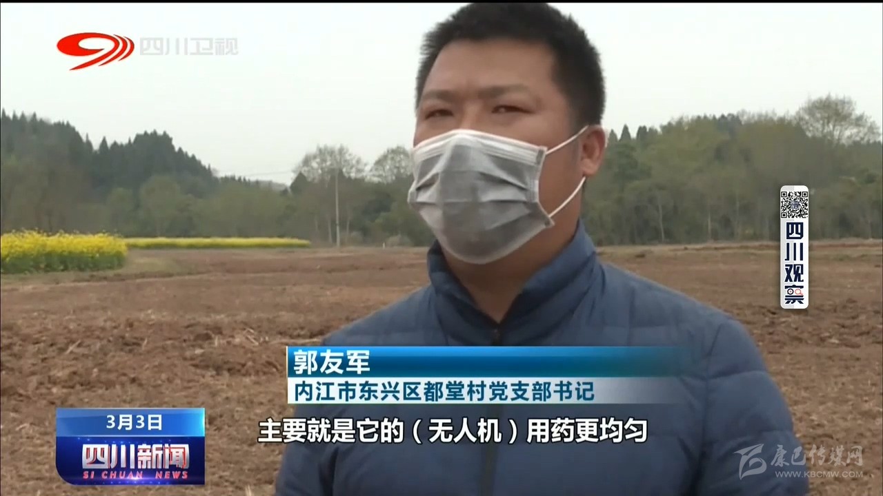 內(nèi)江市東興區(qū)都堂村黨支部書記 郭友軍:主要就是它的(無人機(jī))用藥更均勻,除草更有效果。