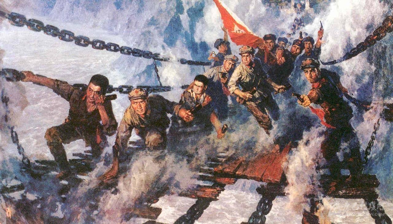 “金沙水拍云崖暖,大渡橋橫鐵索寒?!?5年前,在前有大渡河天險、后有國民黨追兵的危急時刻,22位勇士臨危受命組成突擊隊,冒著迎面射來的彈雨,以強(qiáng)攻手段飛奪瀘定橋,打通了紅軍北上的道路。