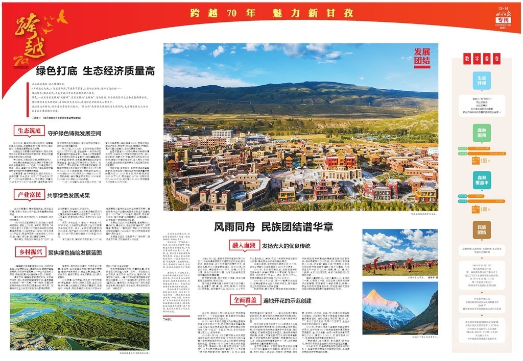第三連版聚焦“發(fā)展、團(tuán)結(jié)”,關(guān)注綠色生態(tài)保護(hù)和民族團(tuán)結(jié),突出甘孜的川西北生態(tài)示范區(qū)定位和藏族自治州特色發(fā)展。