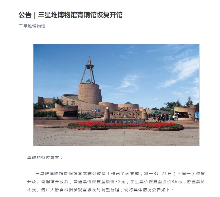 公告 | 三星堆博物館青銅館恢復(fù)開(kāi)館