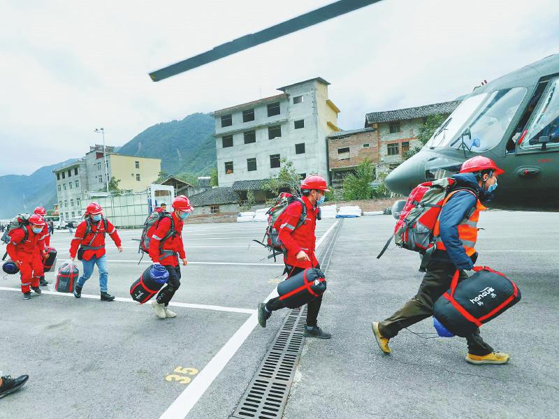 為切實(shí)做好抗震救災(zāi)工作,“9·5”瀘定地震發(fā)生后不到10分鐘,應(yīng)急管理廳即派出先期工作組趕往震區(qū)現(xiàn)場(chǎng)掌握受災(zāi)情況、指揮搶險(xiǎn)救災(zāi),緊急調(diào)撥救災(zāi)物資,協(xié)同開(kāi)辟“空中綠色通道”和救援航線(xiàn),在災(zāi)區(qū)實(shí)施空中偵查、搶救傷員、人員轉(zhuǎn)移、物資投送等救援行動(dòng)。
