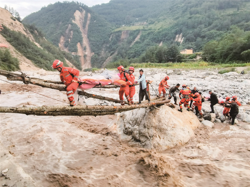 這4公里路,救援人員走河道、爬山坡,艱難行進了近一個小時,才把傷員送上救護車。他們不敢休息,原路返回轉(zhuǎn)運傷員,有的消防員跑了五六趟,還在咬牙堅持。9月6日,青崗坪村300余名群眾全部安全轉(zhuǎn)移,其中包括29名重傷員。