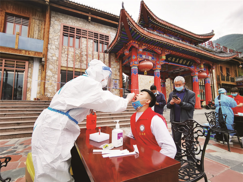 9月7日,志愿者和群眾在進行核酸檢測。 張建國 攝